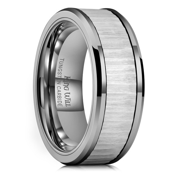 King Will Tungsten Rings For Men Wedding Band, Gun Grey Engagement Ring Inlay Vertical Gunmetal Hammer Pattern, High Polished Beveled Edge - Suitable For Daily Wear, Comfort Fit Size 8