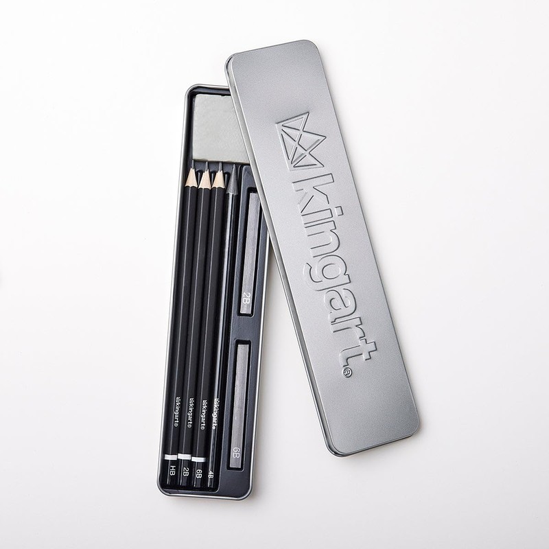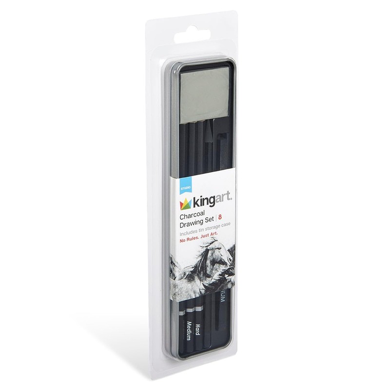 KINGART Charcoal Sketching Travel Tin (138), Set of 8