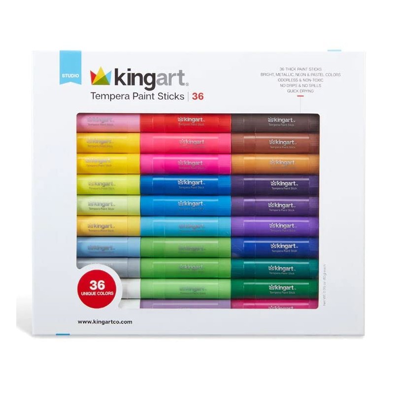 KINGART Tempera Paint Sticks, 36 Vibrant Colors Solid Tempera Paint for Kids, Super Quick Drying, Works Great on Paper Wood Glass Ceramic Canvas (36)