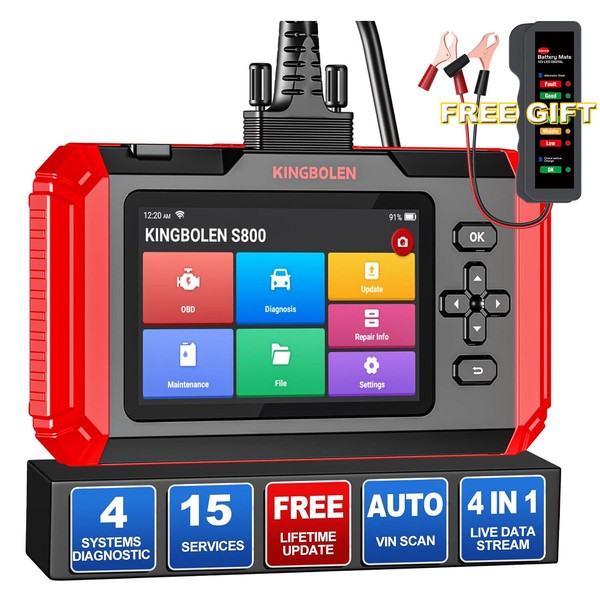 2025 KINGBOLEN S800 OBD2 Scanner + ENG/ABS/SRS/AT 4 Systems Diagnostic + 15 Special Resets + Full 10 OBD2 Functions + Lifetime Update