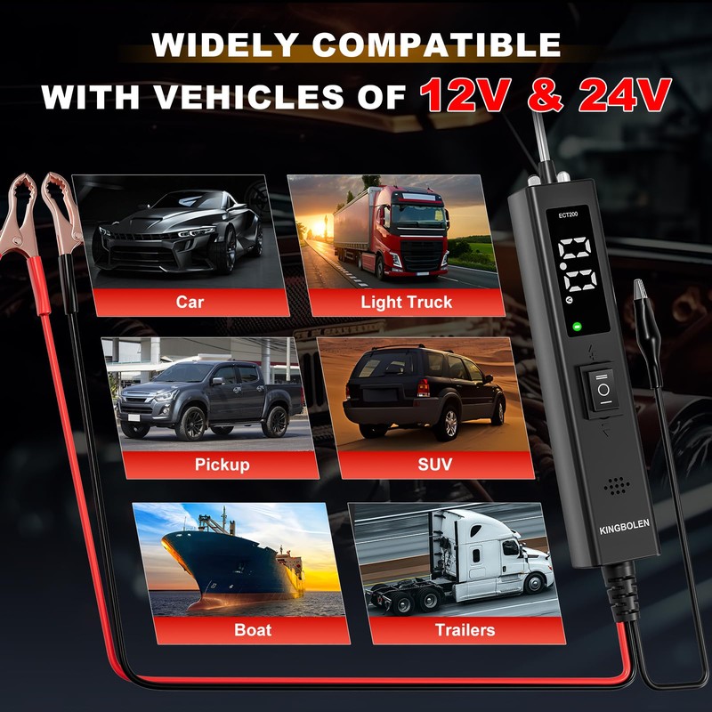 KINGBOLEN ECT200 Automotive Electrical Circuit Tester, 12V 24V Car Voltage Test Power Probe Tester, Component Activation, Continuity Test, Trailer Light Tester, Short Circuit Finder, 16.5FT Cable