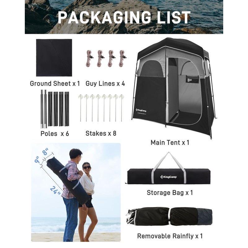 KingCamp Shower Tent, Portable Privacy Tent Outdoor Camping 1/2 Room Toilet Tents with Shower Bag & Dressing Room for Travel Beach Tailgate