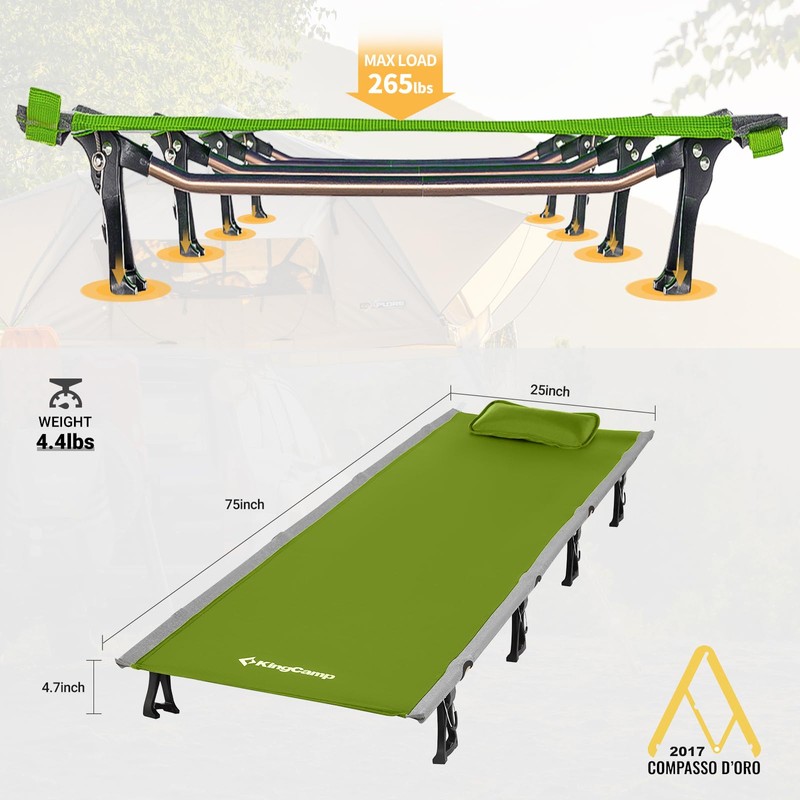 KingCamp Camping Cot, Folding Portable Heavy Duty Ultralight Cots for Adults Camping Tent Hiking Backpacking Mountaineering Travel Indoor Outdoor Indoor Base Camp with Pillow, Support 265 Lbs.