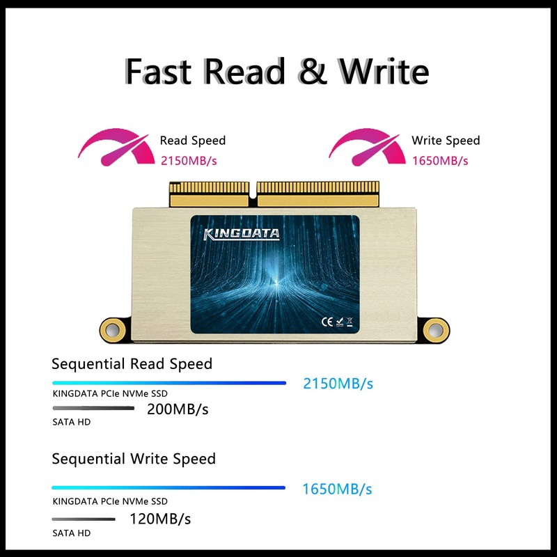 - [High Speed]:With this SSD PCIe NVMe Internal Solid State Drive, you can greatly upgrade your MacBook, read speed is up to 2200MB/s, write speed 2000MB/s (1TB). Faster boot times, faster application start times and better system responsiveness provide you with a smoother experience in games or daily office use.