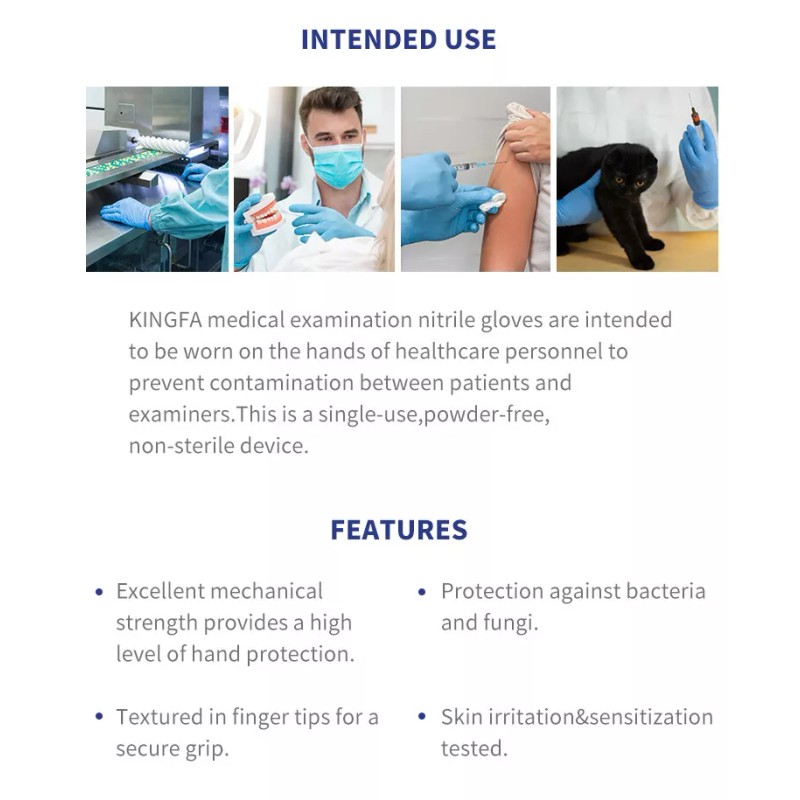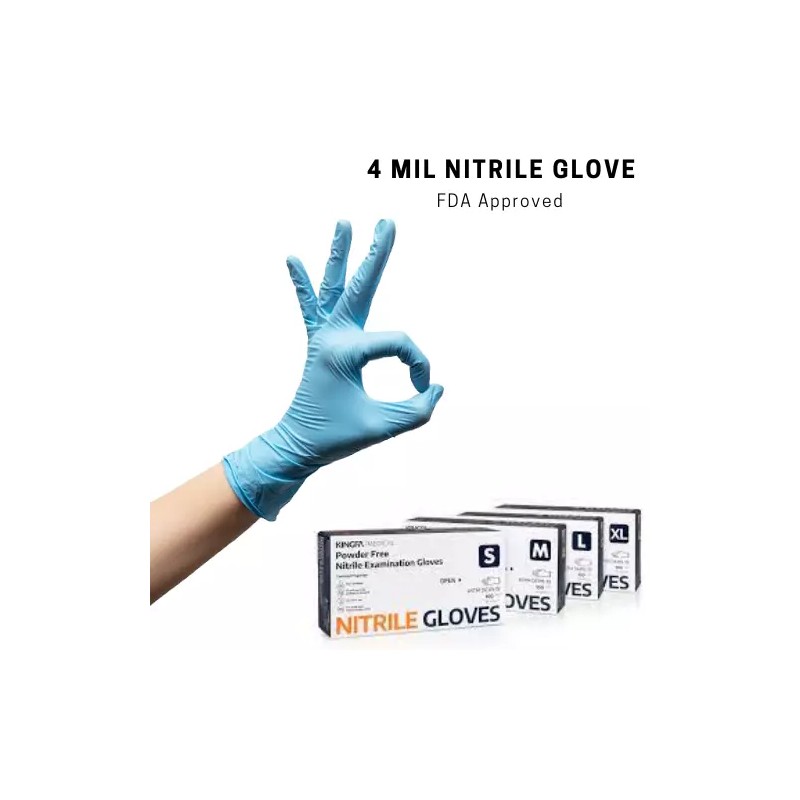 Kingfa Blue Nitrile Gloves 4 Mil - Large, Box of 100