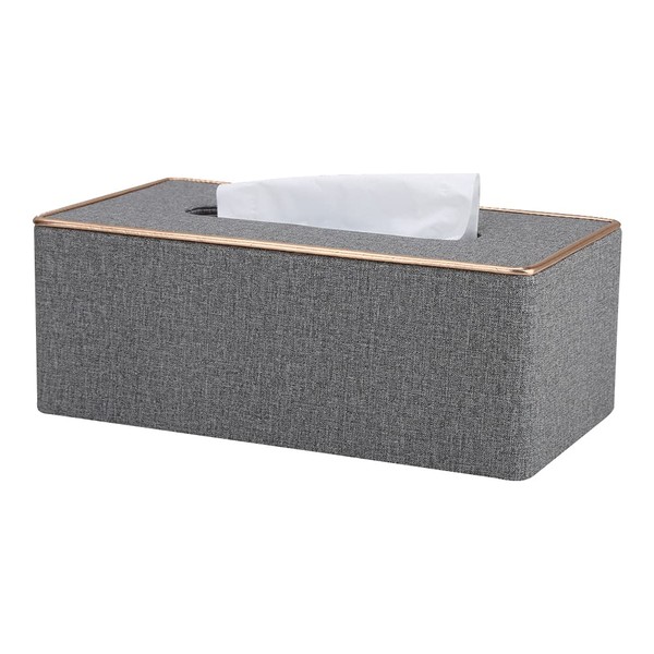 KINGFOM Tissue Box Cover PU Leather Rectangle Tissue Box Holder for Home or Office (Gray)