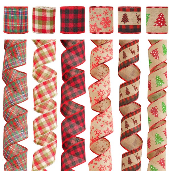 - 【Packing List】The package contains 6 rolls Xmas wired jute ribbon, each roll is 2.5inch/6.4cm wide, 5 yards/4.57m long, and the total length is 30 yards/27.4m, enough to meet your needs for decoration and craft making, and can make your imaginative ideas come true.