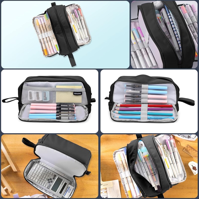 - Fashion and Unique Design:The pencil pounch adopts multi-layer double-opening window design, a total of 4r compartments, partition storage, independent storage, so that many and messy stationery is more organized.Designed with the comfortable handle, allows you to carry pencil cases easily to any occasion, you can also hang the pencil case for easy storage.