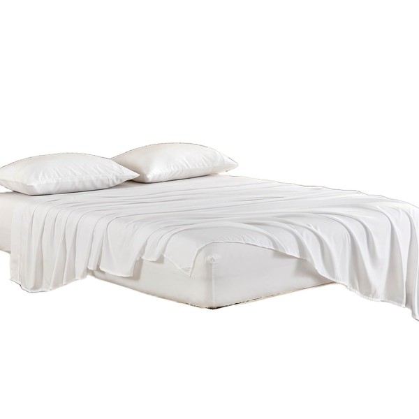 Kingnex Bamboo Viscose Queen Sheet Set Soft Brushed Mircrofiber 4 Piece Bedding Sheets & Pillowcase Queen White