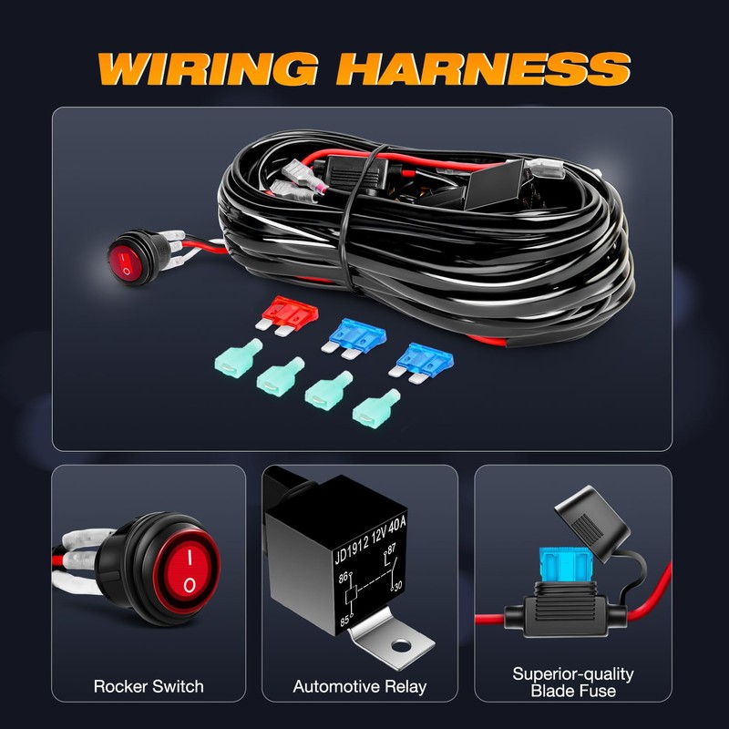 - Complete Wiring Harness: LED light bar wiring harness with relay and replaceable blade fuse, which is highly conductive and good temperature resistance, compatible with devices equipped with 12V power supply.