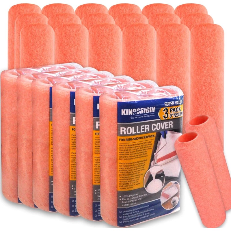 - The set includes 18 Piece 9-Inch roller covers with 3/8-inch nap,with 18 Paint Roller Covers per Pack (18-Pack) made of 100% Polyester Fabric, High-quality, and Heavy duty