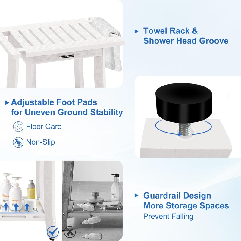 - Sturdy & Stable: Supports Up to 400 lbs: The Kingpavonini white shower benches for inside shower features an innovative inclined leg design with outward-expanding legs, maximizing the load capacity to 400 lbs. The shower stool’s sturdy structure ensures maximum stability and safety