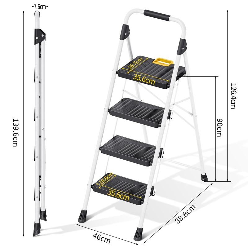 - Versatile Use: This 4 step folding ladder improves efficiency and saves energy, it's essential for cleaning, painting, decorating, and all your DIY projects, making it perfect for home offices and both indoor and outdoor spaces