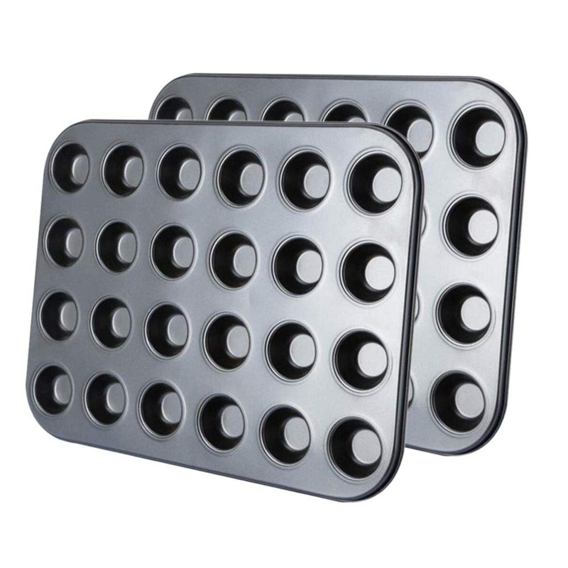 Kingrol 24-Cup Nonstick Mini Cupcake & Muffin Pans, Carbon Steel Baking Pans, Cake Moulds - 2 Pack