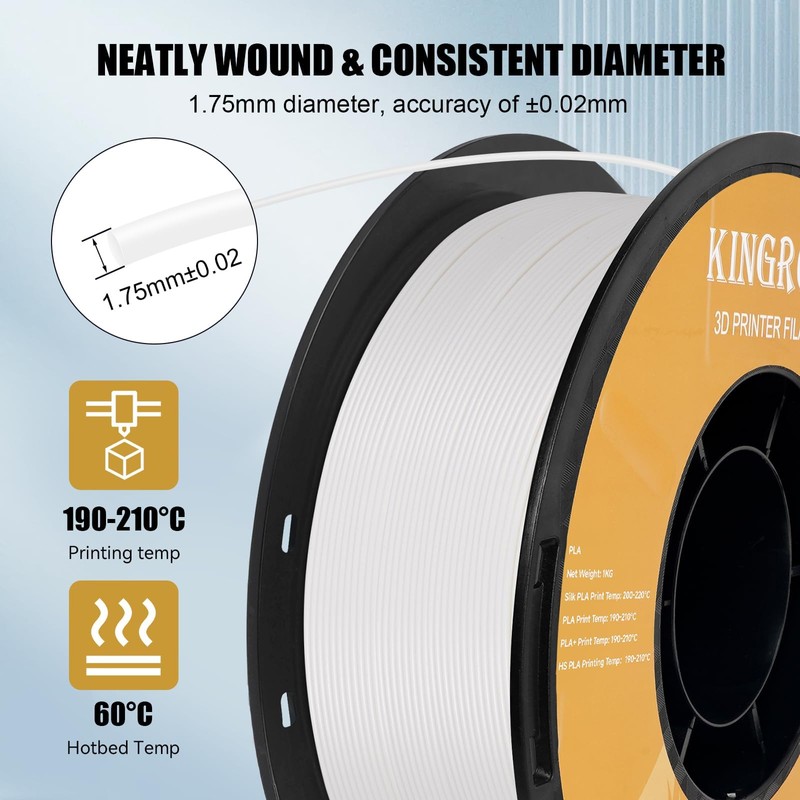 - 【Dimensional Accuracy & Consistency】Kingroon 3D Printer PETG filaments have very strict tolerances. Diameter is 1.75mm with a dimensional accuracy of + / - 0.02mm 1 kg spool (2.2lbs)