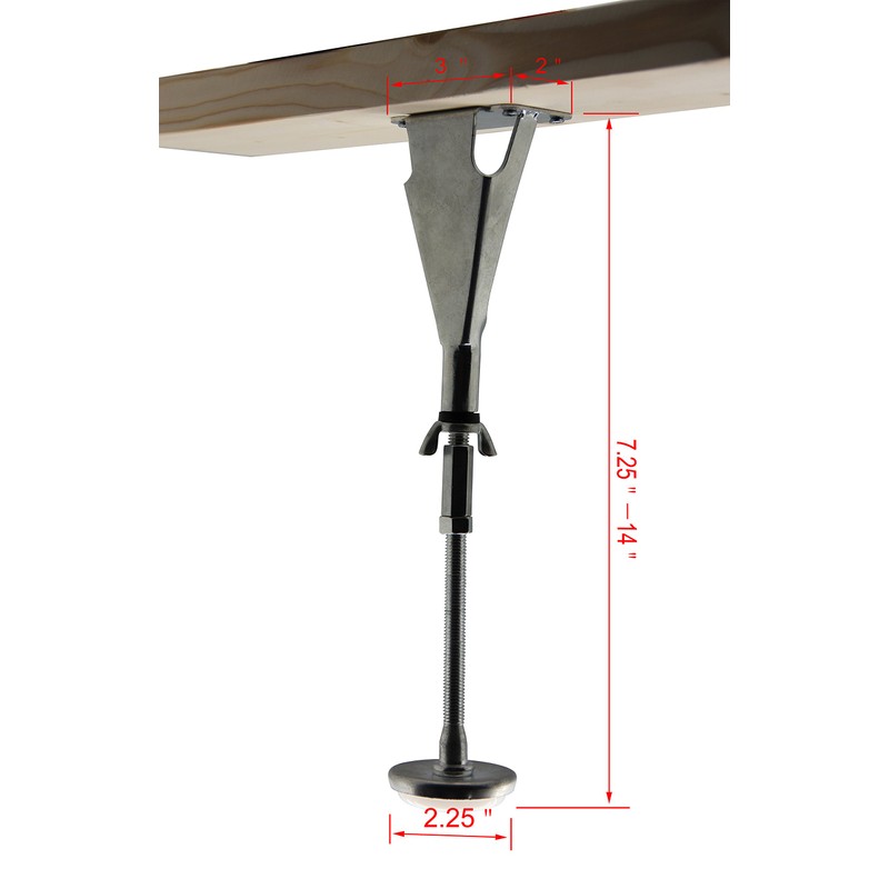- Adjustable Height: With a range of 7.25" to 14", our support leg can be adjusted to fit your bed frame perfectly. Dimensions: 2" W x 3" D x 7"/14" H