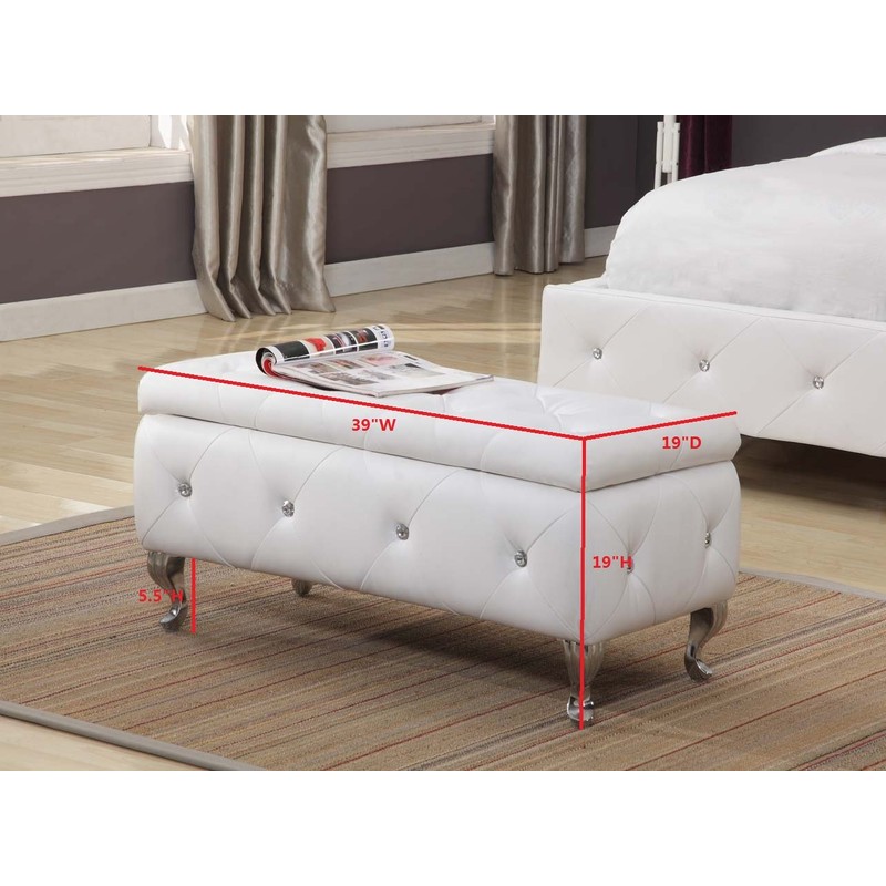 - Kings Brand Furniture - White Vinyl Tufted Design Upholstered Storage Bench Ottoman.