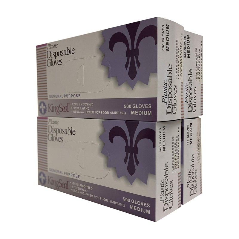 KingSeal Light Duty Poly Disposable Gloves, Powder-Free, Latex-Free, Size Medium - 4 Boxes of 500 Gloves By Weight (2000 Count)