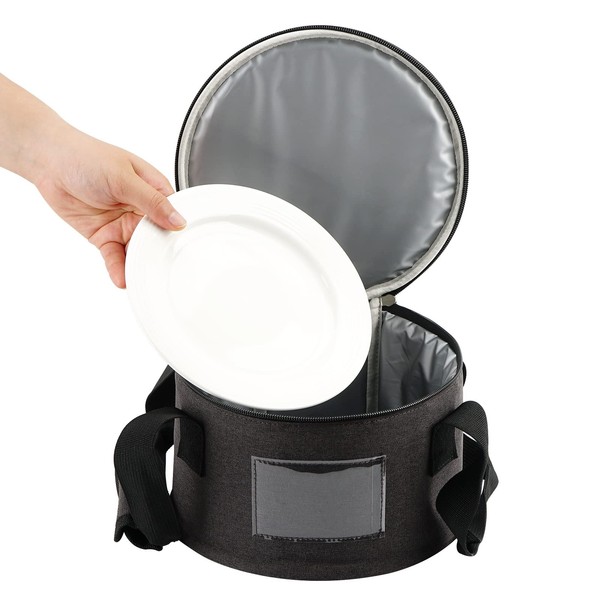 - Dessert plate / Saucer storage case holds a set of 12 plates. The body of the bag is supported by pearl cotton for protection against chipping and scratching.