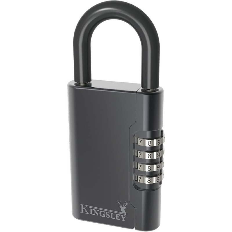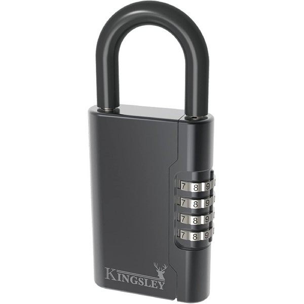 - DURABLE CONSTRUCTION: The key box is made with solid metal construction and a weather-resistant finish, the Kingsley Guard-a-key Lock Box is designed to withstand the elements and provide reliable security for your keys. The shackle has a vinyl covering on it to protect your door or other painted surfaces from scratching.