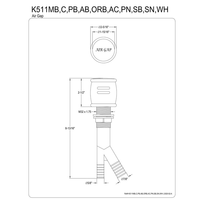 Kingston Brass K511WH Heritage Dishwasher Air Gap, White