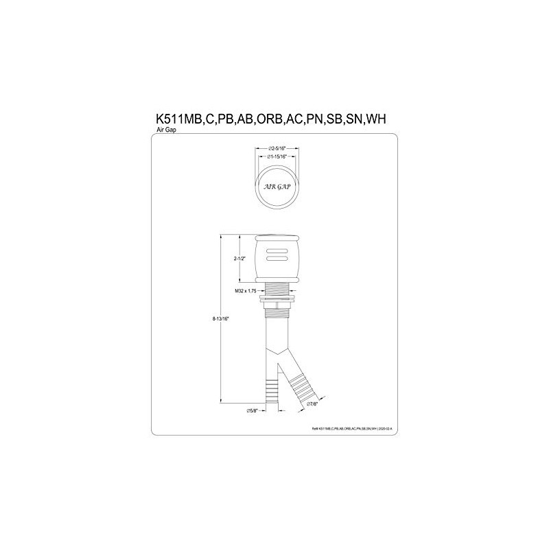 Kingston Brass K511WH Heritage Dishwasher Air Gap, White