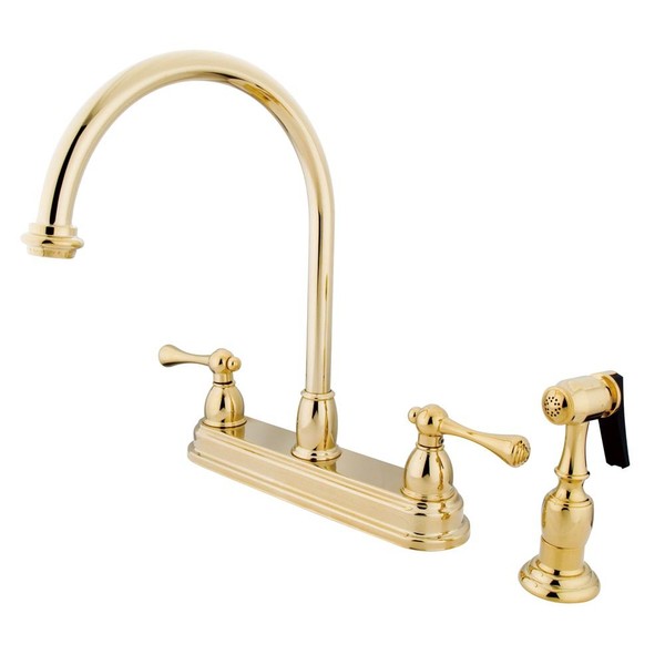 Kingston Brass KB3752BLBS Vintage set Kitchen Faucet with Brass Sprayer, 8-1/2-Inch, Polished Brass