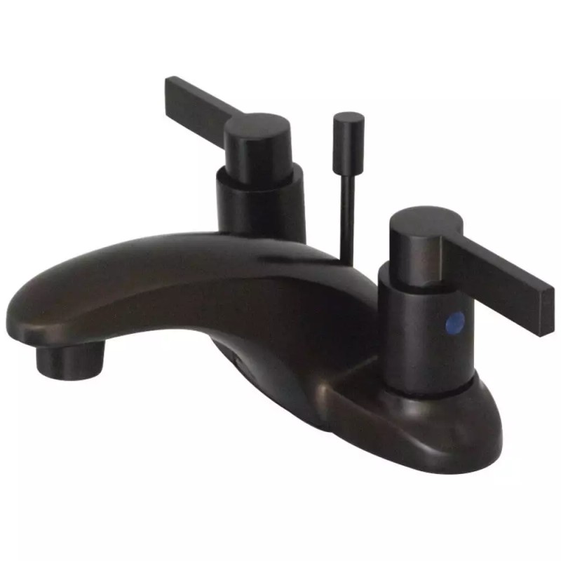 The chic fashion of this faucet is distinguished by its expressive artistry and flat, ergonomic levers. Centerset bathroom faucets are ideal for smaller bathrooms and feature an easy 3-hole installation. The NuvoFusion 4-inch centerset bathroom faucet with retail pop-up and its featured sturdy brass construction and premium brushed nickel finish are guaranteed to glamorize your home's modern ensemble for years to come. Revive the obsolete with the illustrious prestige of this fixture. A matching finish drain is also included.