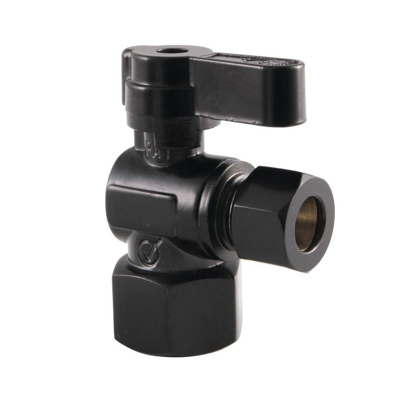 Kingston Brass KF4310MB 1/2" FIP x 3/8" OD Comp Angle Stop Valve, Matte Black