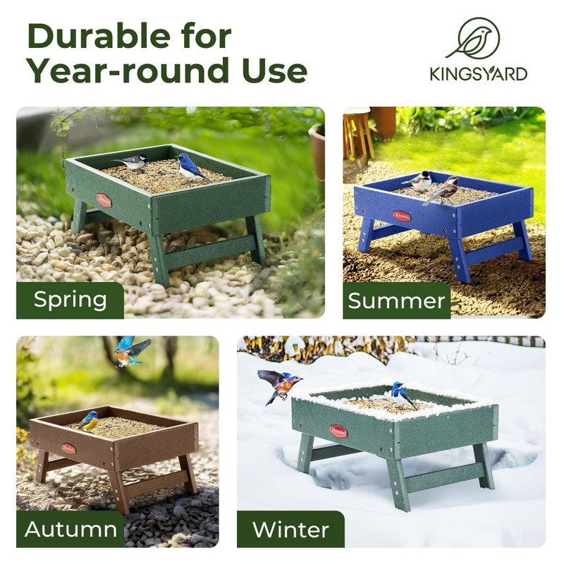 Kingsyard Ground Bird Feeder for Outdoors - Recycled Plastic Platform Feeder for Wild Birds, Squirrels, Chicken, 5 LBS Large Capacity, Green