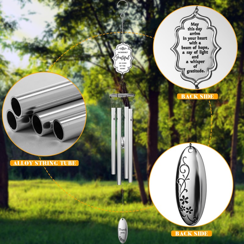 - Carillones de viento conmemorativos de material de alta calidad: el timbre de viento está hecho de aluminio de pino de alta calidad que es duradero, impermeable y resistente al desgaste. Los 4 tubos de aluminio anodizado adjuntos son resistentes a la corrosión y gruesos. Hace que las personas se sientan tranquilas con un tono de llamada nítido. Las campanillas de viento conmemorativas también serán una gran adición a la decoración del hogar, jardines o patios de patio trasero.