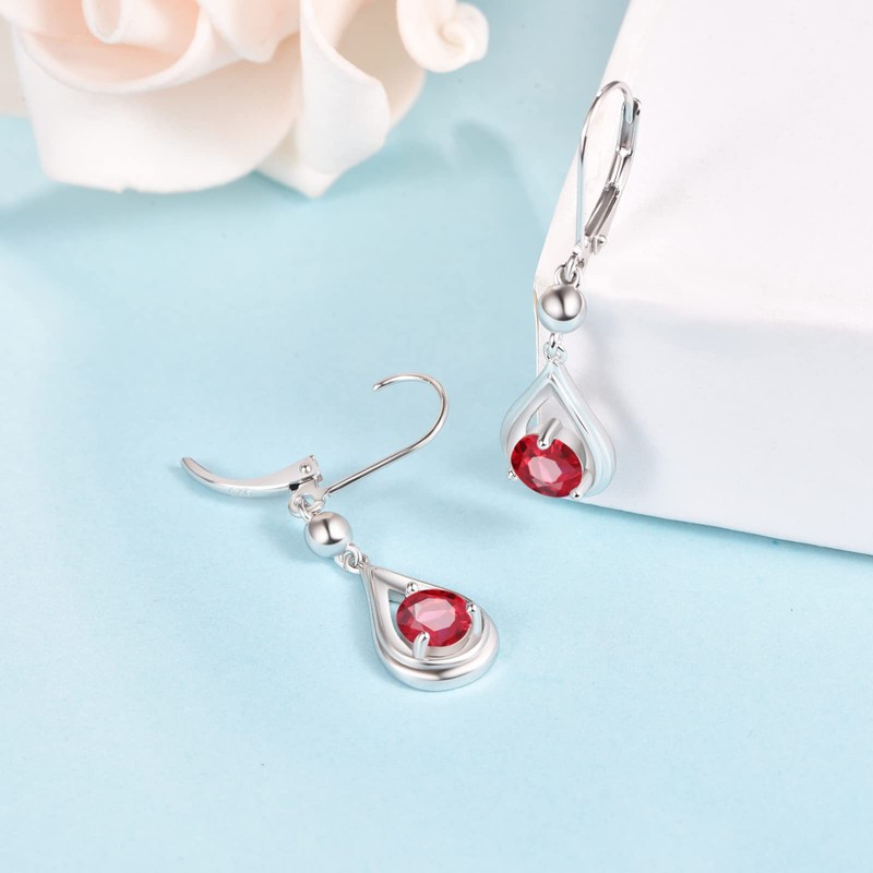 KINGWHYTE 14K White Gold Plated Hanging Earrings 925 Sterling Silver Leverback Earrings Birthstone Cubic Zirconia Earrings Jewellery for Women Girls, Sterling Silver, Cubic Zirconia