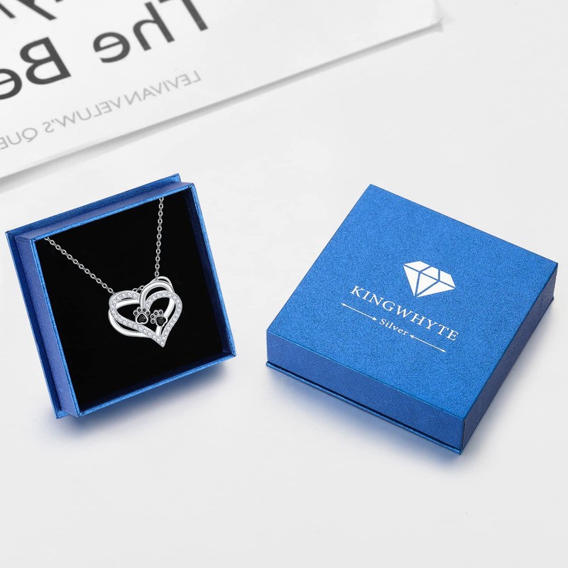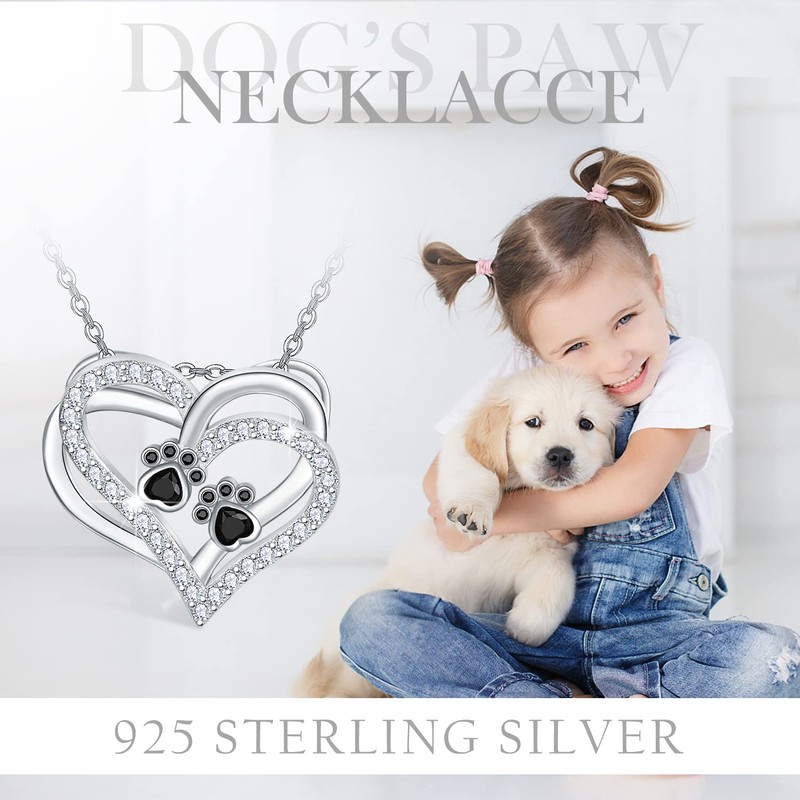 KINGWHYTE Dog Paw Necklace Heart Pendant 925 Sterling Silver Paw Print Jewellery Gifts for Animal Lovers Women Girls Birthday Gifts, Sterling Silver, Cubic Zirconia