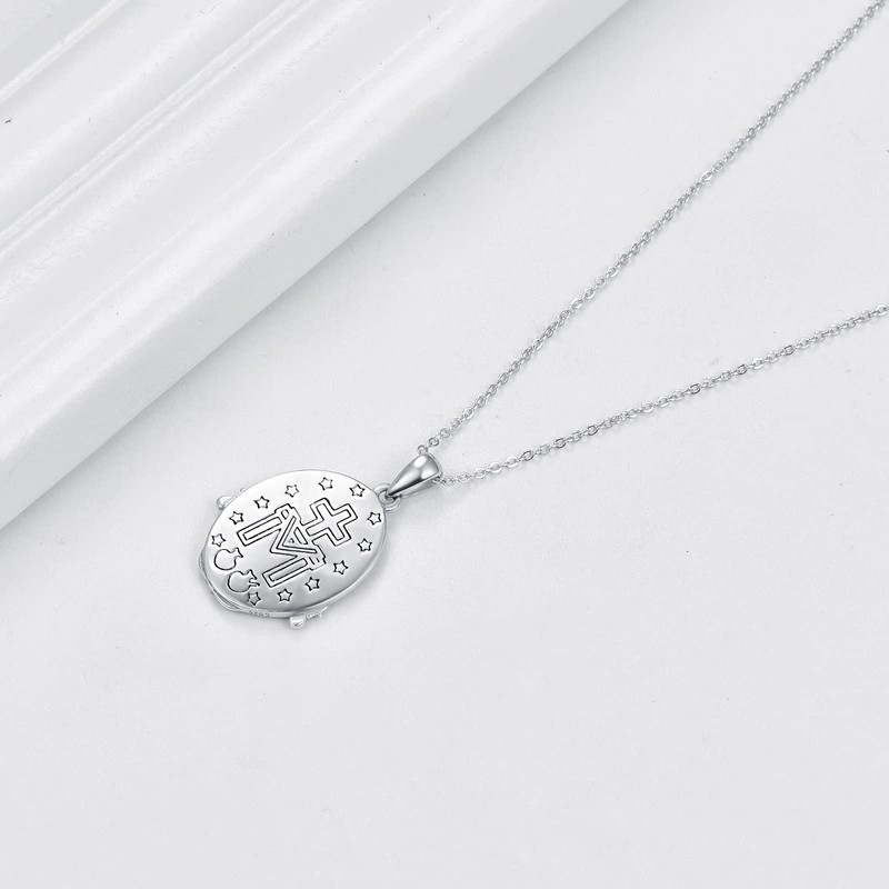 KINGWHYTE Virgin Mary With Jesus Necklace S925 Sterling Silver Virgin Mary Miraculous Medal Jesus Pendant Religious Jewelry Gifts for Women Mom