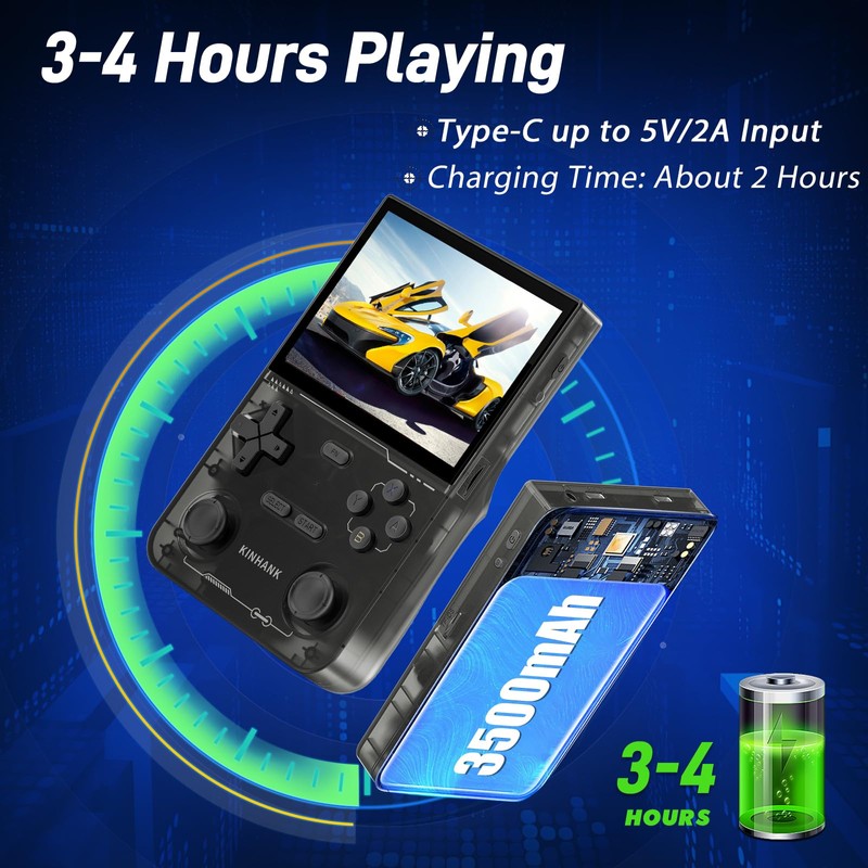 - 【3500mAh Large-capacity Battery】: retro game console uses a 3500mAh large-capacity battery, which can provide about 4 hours of game time, and the charging interface uses a Type-C fast interface to reduce your waiting time.