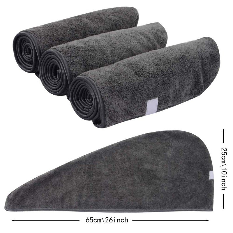 KinHwa 3 Pack Microfibre Hair Drying Towel Super Absorbent Large Hair Towel Lightweight Hair Towel Wraps for Women Anti-frizz Head Towel Turban Soft Ideal for Curly Thick Long Hair Dark-grey