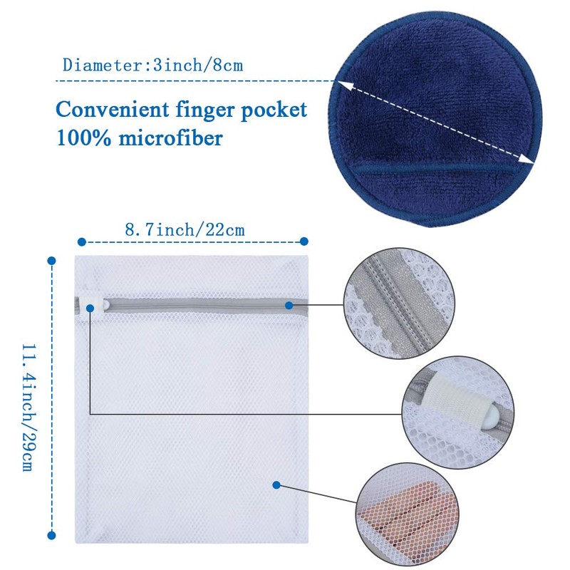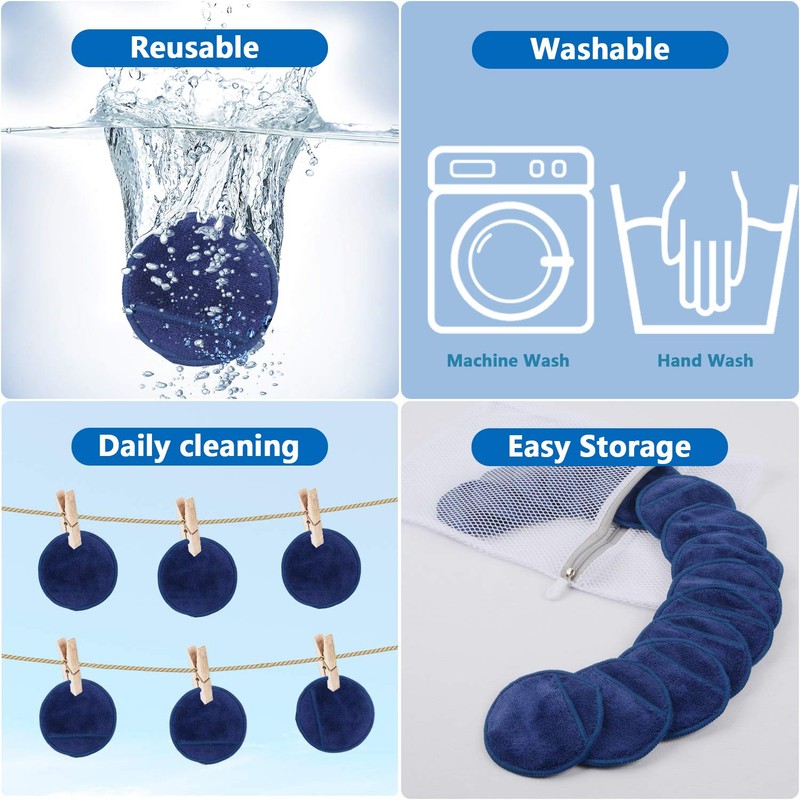 • Contains: 14 facial cleansing pads (diameter 8 cm), soft premium microfibre with a laundry bag, ideal for everyday use or for travel.