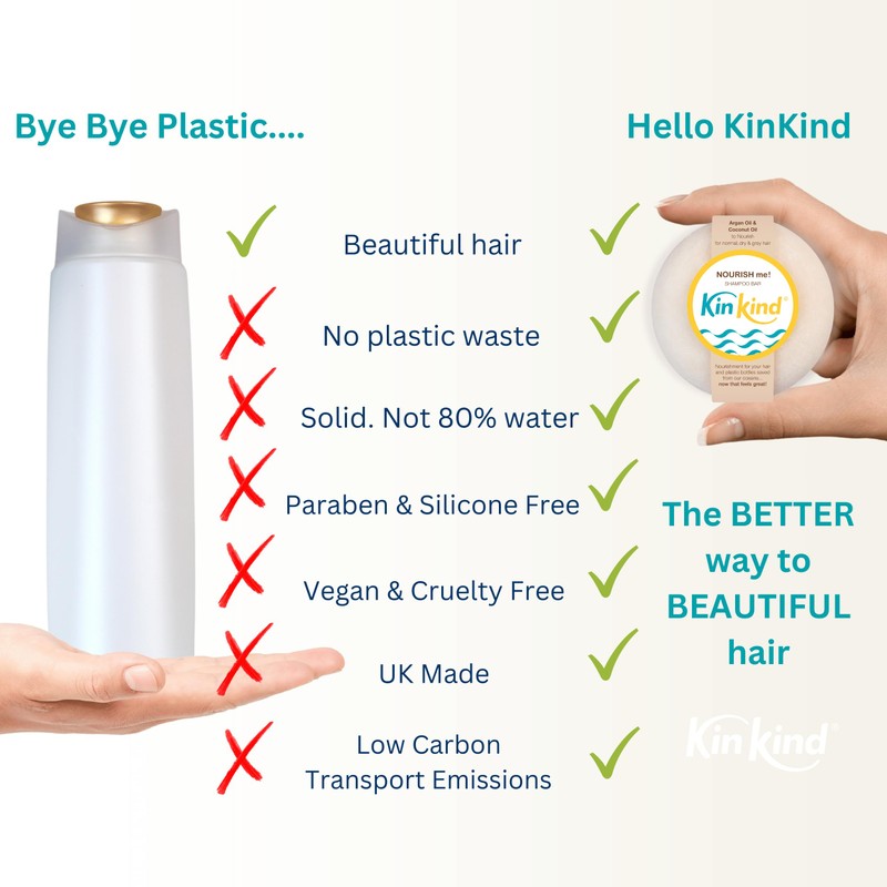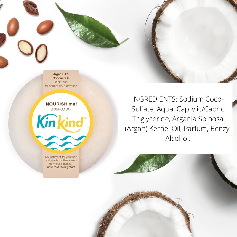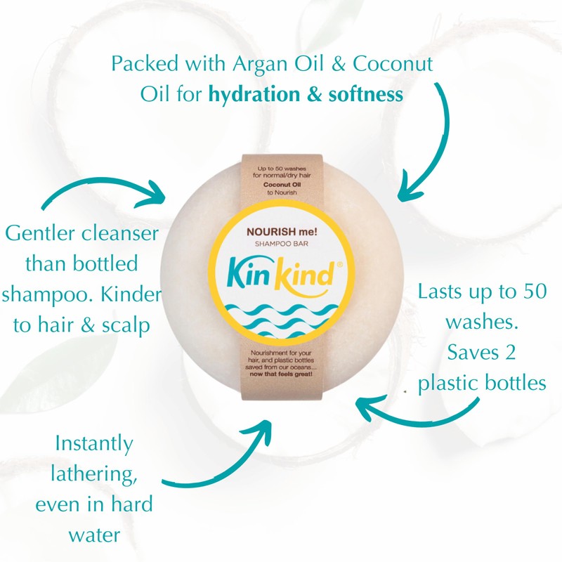 KinKind NOURISH me! Travel Shampoo and Conditioner Bars. Up to 50 washes. This travel and gift set contains a soap tin for each bar. No leakage, less space, less weight. Ideal gifts for women.