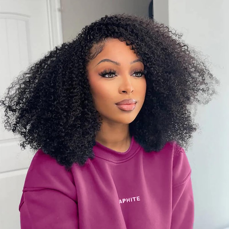 - Kinky Curly Half Wig Human Hair Material: Our half wig made from 100% high-quality unprocessed real virgin human hair, soft and smooth. 200 density, healthy and full, no bad smell, no tangle, no shedding. 12A human hair wig can be straightened & dyed & restyled.