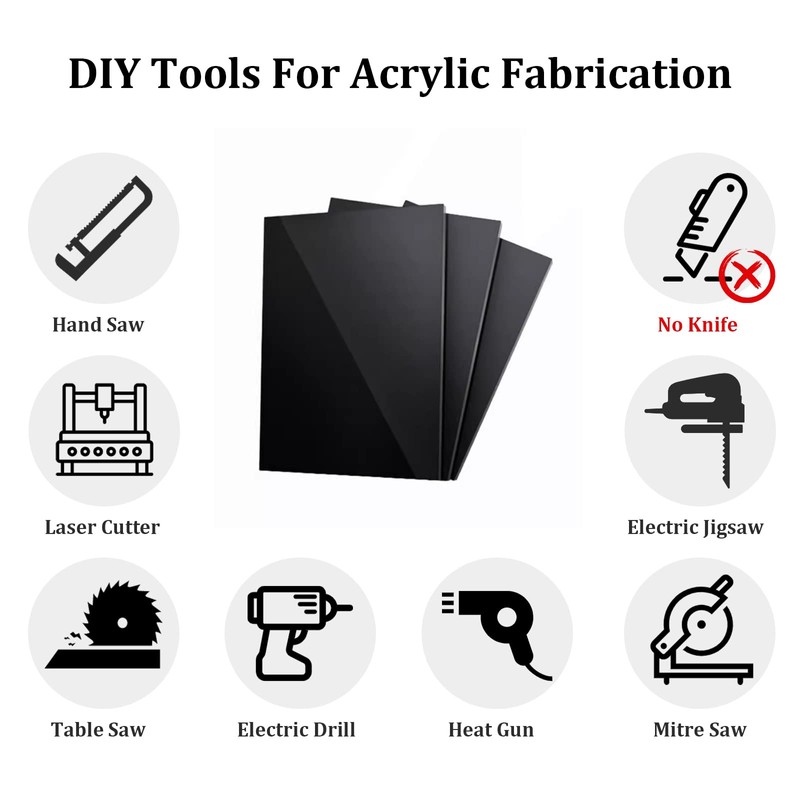 - EASY TO CUT -- Cut our acrylic panels quickly and easily with table saw, jigsaw, drill, router or band saw. Works with laser cutters and power tools can be no melting, burning or scorching during laser engraving. Easily drill holes with a drill bit, or cut with a miter saw, jigsaw, router, table saw or rotary tool for clean, polished edges.