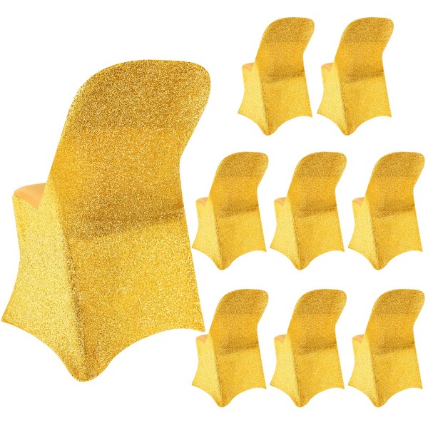 Kinlop 10 Pcs Gold Spandex Stretch Chair Cover, Gold Stretch Chair Slipcovers Fitted Removable Folding Chair Cover Protector for Dining Wedding Home Banquet Party Decor Supplies (Bright Gold)