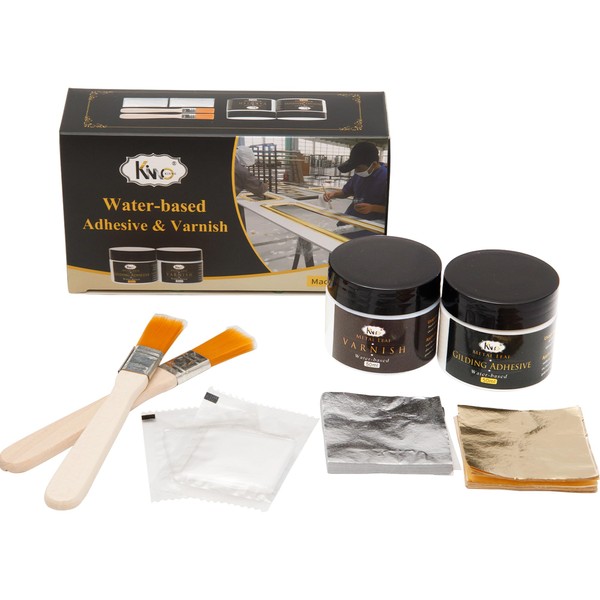 KINNO Epoxy Gilding Adhesive Glue Set, 50ml Gold Leaf Glue,50ml Gilding Varnish and 100 Sheets 5cm Gold Leaf,and 100 Sheets Silver Leaf