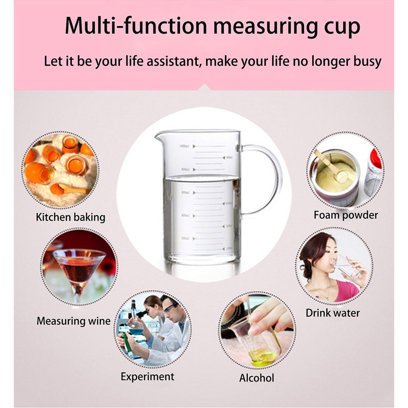 - 【Features】Food grade glass measuring cup made of borosilicate glass can withstand a temperature difference of 200 degrees. Suitable for microwave ovens Gas stoves can also be placed in the refrigerator for refrigeration. It can also be used in laboratories,It can also be used in laboratories.It has elegant shape and high ornamental and fun.