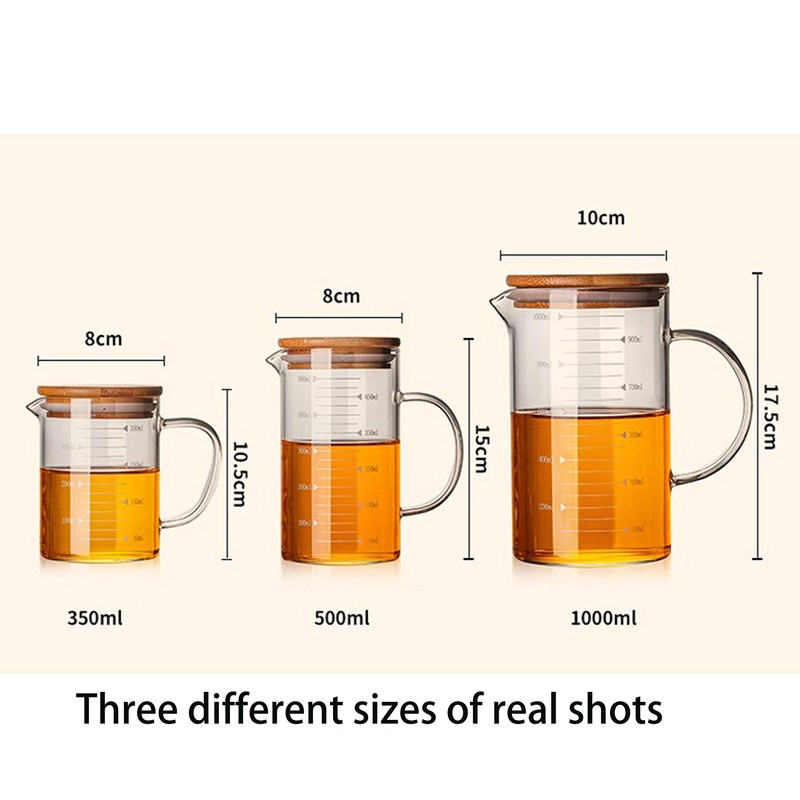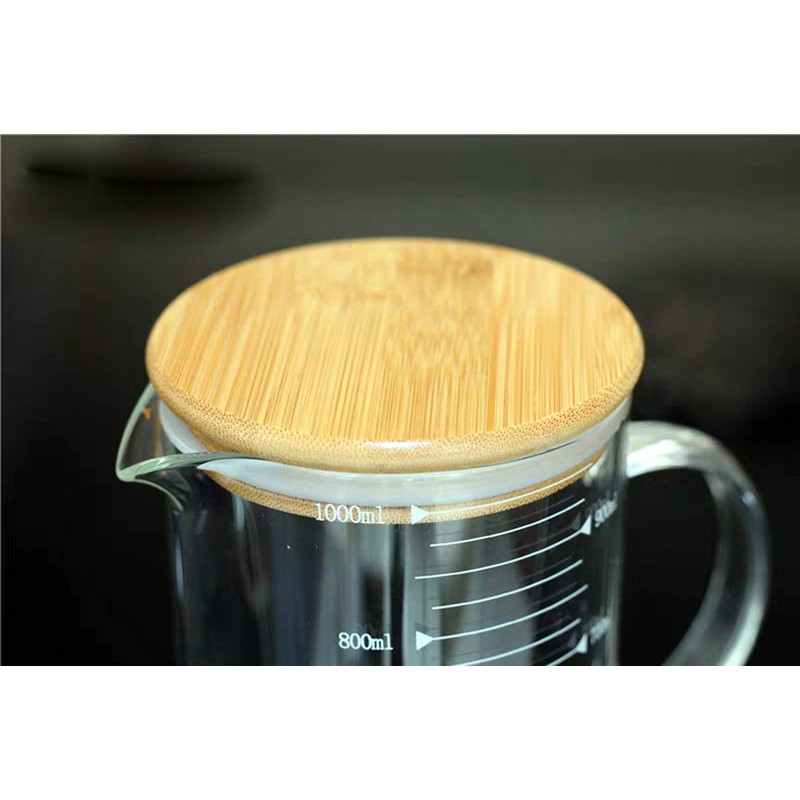 KINNOSE Graduated Beaker Mug with Handle and Durable Bamboo Lid Borosilicate Glass Multi-Function Food Grade Measuring Cup 1000ML
