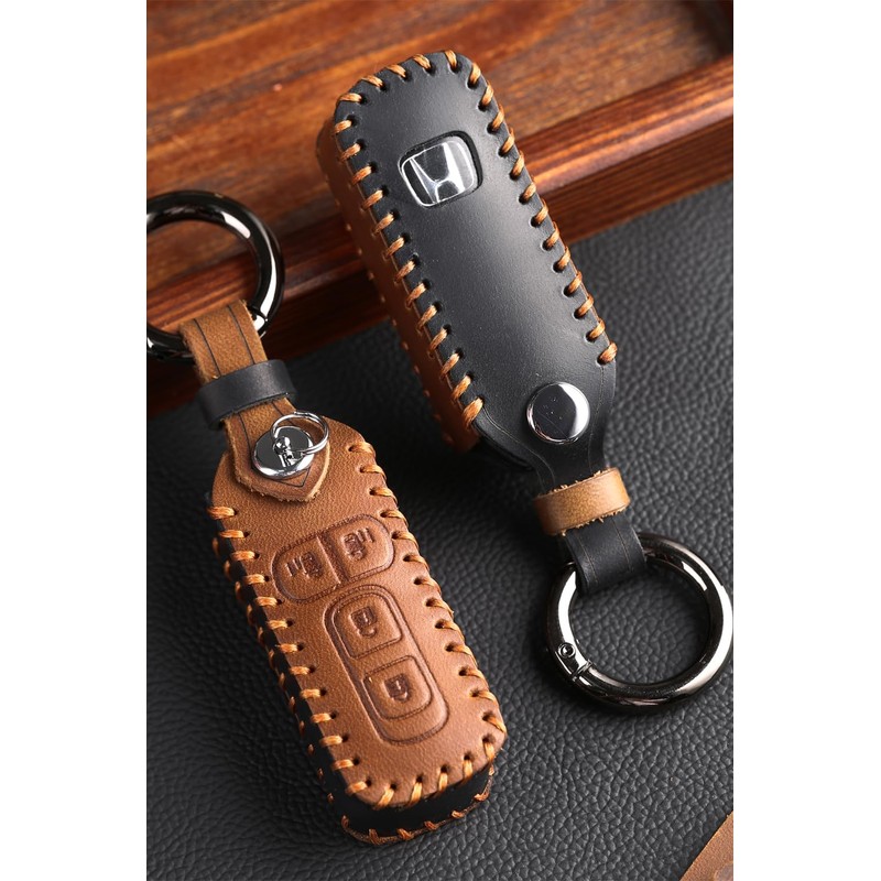 [Kinotaka] Leather Smart Key Case for Honda Cars, 2 Buttons, New NBOX Custom (N-Box) N Wagon, N-WGN Custom, N-ONE n-van Slash, Etc. Genuine Leather Exclusive Design 360 Degree Full Protection Key