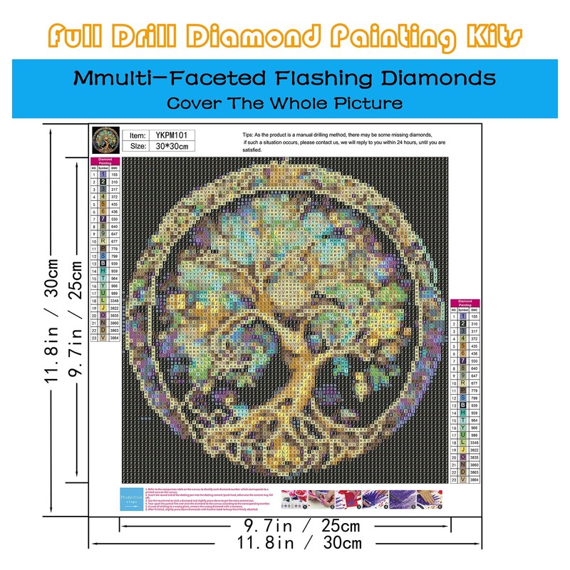 - 【5D Diamond Painting Kits for Adults】Each tree of life diamond painting comes with all tools in need. Following tools are Included: 1*HD painting canvas, 1*diamond pen, 1*cube diamond tray, 1*red glue clay (2cm *4cm), 1*pen grip, 10*plastic bags for putting diamonds, and enough colorful round diamonds. For each kit we'll provide 20% diamond more than need.
