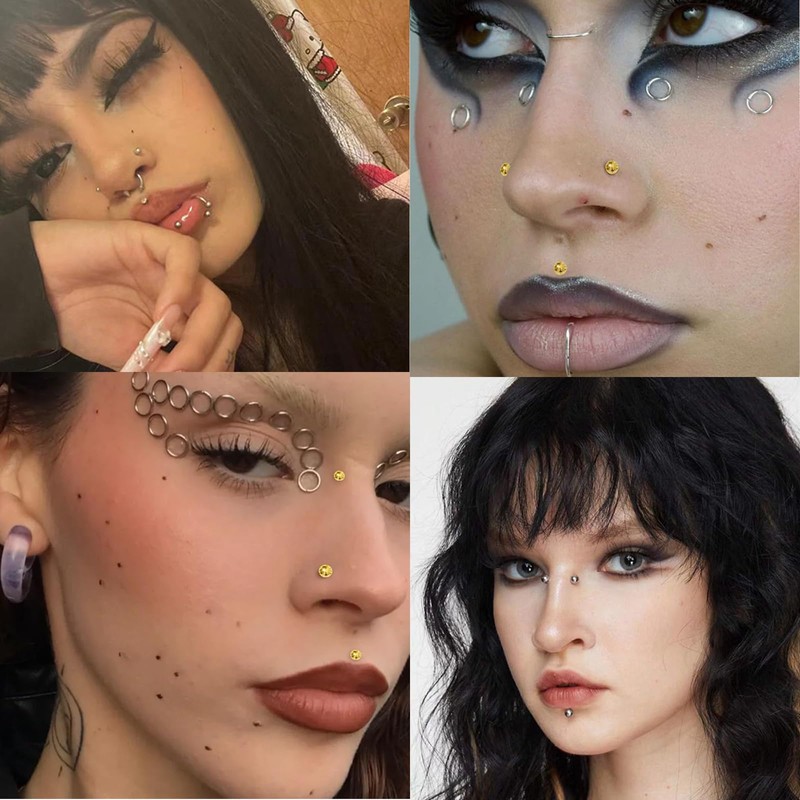 - Material and versatility: these fake piercings are made of high-quality acrylic and skin-friendly material, ideal for use on the eye, face, ear or nose. Environmentally friendly manufacturing ensures that you can shine without any worries. Enjoy this versatile fake nose piercing in different places on your face to create new looks again and again.