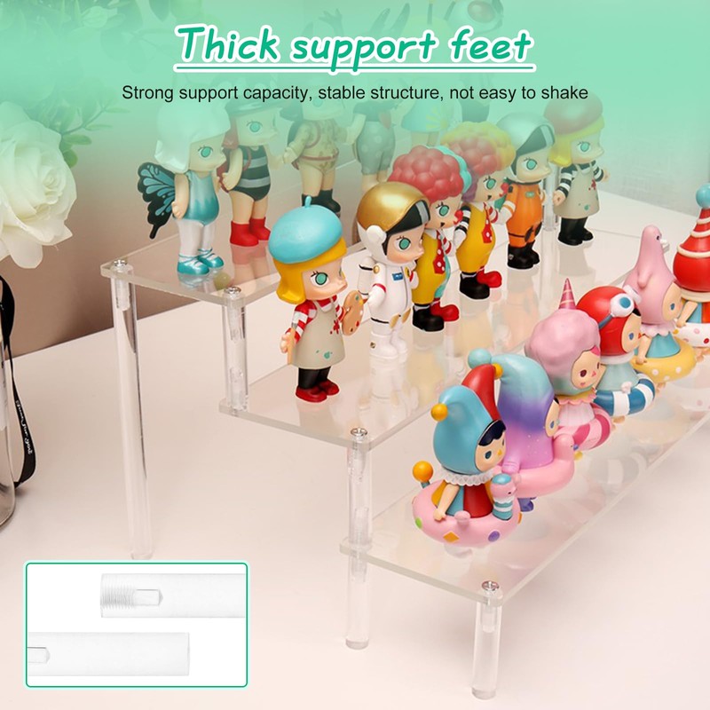 - 【Premium Material】Our acrylic tier stand is made of high quality acrylic, which has a nice polishing effect, beautiful and practical. The stand legs use solid cylinder, so our display shelf is more sturdy and stable.