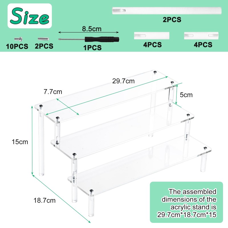 - 【Multi-level Display】The 3-tier acrylic risers allows a clearer view of the pop figurines, perfumes, collectibles on each layer. Free up space on your desktop and cabinets, and the 3-tier display rack can better store your items and look more neat and organized.