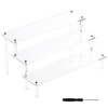 - 【Wide Application】This clear display shelf is perfect for displaying toy figurines in cabinets or countertop, shot glasses collection, celebrating party desserts, and displaying cosmetics and skincare products on the dresser, it can also be used as the spice rack to put spices and seasoning.